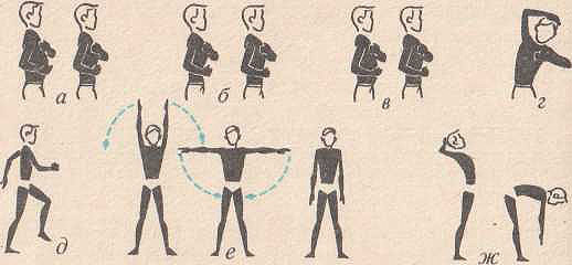 Стоя, ноги на ширине плеч, кисти рук на затылке. Проводить наклоны туловища в стороны 4-6 раз. При наклоне- выдох, темп средний.