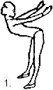 И. п. - стоя на носках, слегка нагнувшись вперед, ноги на ширине "лыжни", руки вперед, кисти "сжимают лыжные палки." На счет 1, опускаясь на стопы, присесть и наклониться вперед до касания животом бедер, руки вниз-назад до отказа, кисти полураскрыть (мощных выдох), на счет 2-3 -оставаясь в наклоне, пружинить ногами и завершить выдох, вернуться в исходное положение диафрагмальным вдохом.
