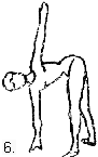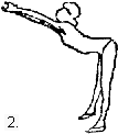 встать прямо, правую ногу поставить впереди левой, правую руку отвести назад, прямую левую руку отвести вперед и вверх. На вдохе энергично сменить положение рук, взмахнув левой ногой до касания носком правой руки. Вернуться в исходное положение - выдох;