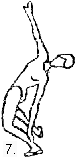 То же. Броски мяча из-за головы 8-10 раз. Броски делать на выдохе. Основная стойка: руки в стороны – вниз, локти назад – вдох, опустить руки и голову, потрясти руками - выдох 4-6 раз. На выдохе расслаблять пояс верхних конечностей.