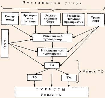 Рис. 1. Место турагента (ТА) и туроператора (ТО) на туристском рынке (ГКС - глобальные компьютерные сети)