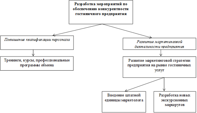 6. Разработать организационно-технические мероприятия, направленные на обеспечение конкурентоспособности гостиничных услуг;