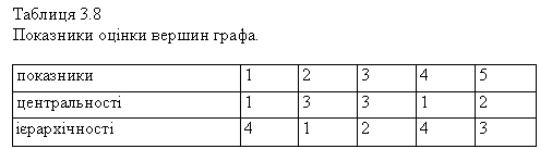 Вибір пунктів по маршруту узгоджується з програмою відповідно до виду туризму, терміну та класу обслуговування. Вибір схеми маршруту залежить від транспортної системи: конфігурації транспортної мережі, її густоти та технічного стану, рівня розвитку окремих видів транспорту, рівня розвитку транспортної інфраструктури, що забезпечує надійність та безпеку роботи транспорту. Найпоширенішим випадком при розробці схеми є варіант, коли за обмежений термін при мінімізації витрат часу на переміщення між основними пунктами маршруту бажано забезпечити максимально можливу інформативність подорожі, тобто охопити якнайбільше об'єктів показу задля задоволення пізнавальної мети. Такий варіант отримав назву «задача комівояжера». Комбінований маршрут Умовні позначення: Пп - початковий пункт маршруту; Пр - проміжний пункт з порядковим номером 1,2,...п; Кп - кінцевий пункт маршруту; напрямок руху При вирішенні цієї задачи можна застосовувати методичний апарат теорії графів. Графо-аналітичні методи дають можливість виокремити найсуттєвіші елементи, унаочнити наявну інформацію, обгрунтувати відбір та ієрархізацію пунктів маршруту. Задача зводиться до побудови графа - математичного відображення просторової організації турпродукту. Граф являє собою певним чином організовану кінцеву множину вершин і множинність ребер. Вершини і ребра є елементами графа, що роблять його зв'язним. Граф називається метризованим, коли його елементам надається певне значення, наприклад, метризація вершин задається атрактивністю об'єктів показу в балах, місткістю тг класністю готельної бази, бальною оцінкою різнорідності програми тощо; ребра графа відображають наявний зв'язок між вершинами і в нашому випадку це перш за все транспортний зв'язок, який відтворює або тільки наявність шляхів сполучення, або їх категорію чи полімагістральність. Значення ребер може задаватися відстанню (в км) між пунктами маршруту або часом, необхідним для його долання тим чи іншим видом транспорту (такий варіант кращий, коли немає взаємозамінності транспортних засобів). Тобто сам процес побудови графа є певним впорядкуванням та генералізацією інформації відповідно до мети подорожі. Таким чином, ми маємо графічне зображення територіальної структури майбутнього турпродукту, що задана елементами графу. Вершинами графа (V) є пункти, обрані за визначеними критеріями, а ребрами (Е) - наявний зв'язок між ними, тобто шляхи сполучення певної категорії. Оцінка положення кожної вершини в графі, визначення її місця в загальній системі атрактивних ресурсів, а також оцінка графа в цілому (його зв'язність, конфігурація) і його параметризація за витратами часу провадиться за допомогою топологічних мір. Ці міри визначаються на множині відношень між елементами графа. Виділяють міри концентрації та диференціації, за якими оцінюється положення вершин у графі, і міри інтеграції та композиції, що дають змогу оцінити граф в цілому. Розглянемо умовний приклад. На певній території за умов анрактивності туристичних ресурсів, рівня розвитку готельної бази та транспортного забезпечення виділені п'ять пунктів, що зв'язані між собою автошляхами вищої категорії та залізничним сполученням (мал. 3.11). Треба оцінити положення кожної вершини в графі. Для цього використовується показник центральності (), щ