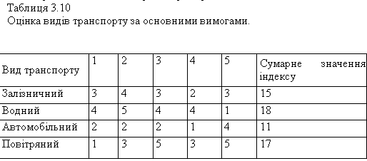 Види транспорту та типи транспортних засобів дуже різняться за своїми характеристиками (таблиця 3.10).