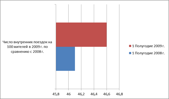 Таблица 2 - Число поездок резидентов на 100 жителей населения в 1 полугодии 2009 года по сравнению с аналогичным периодом 2008 года