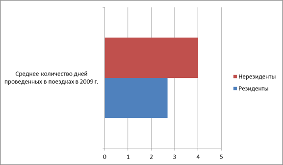 Таблица 4 – Среднее количество дней проведенных в путешествиях в 2009 г.