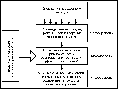 При этом на мезо- и микроуровне существенным фактором является территориальный, определяющий равномерность спроса на услуги и качество обслуживания.