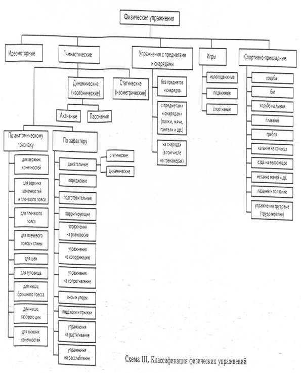 Физические упражнения (в виде лечебной гимнастики) являются основным средством ЛФК. С лечебной целью используют физические упражнения, подвижные и спортивные игры, прикладные и спортивные упражнения, пассивные, рефлекторные и корригирующие движения, упражнения на специальных снарядах и аппаратах (тренажерах), идеомоторные упражнения и тому подобное.
