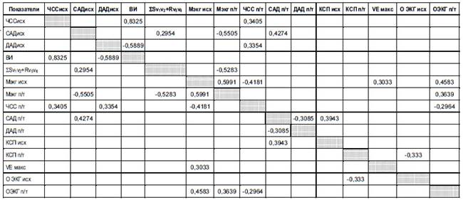 Таким образом, отобранные показатели функционального состояния сердечно-сосудистой системы достоверно связаны с другими показателями морфофункци-онального обеспечения работоспособности и показателями самой работоспособности.