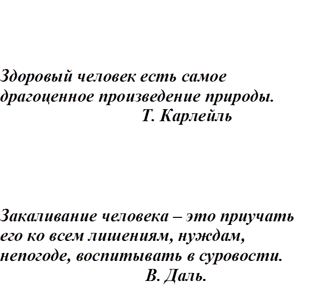 Таким образом, закаливание – важное средство профилактики негативных последствий охлаждения организма или действия высоких температур. Систематическое применение закаливающих процедур снижает число простудных заболеваний в 2-5 раз, а в отдельных случаях почти полностью исключает их.