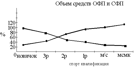 Соотношение средств и методов ОФП и СФП зависит от индивидуальных особенностей спортсмена, его спортивного стажа, периода тренировок и решаемых задач.