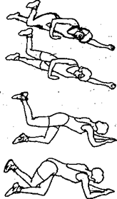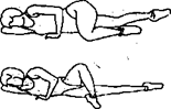 Разработка ягодичных и боковых мышц бедер Лежа на боку, верхнее бедро расположено строго над нижним. Верхнюю ногу, слегка согнутую в колене, поднимите на 5-10 см. Начиная со ступни, поверните, верхнюю ногу так, чтобы носок смотрел вниз. Начиная со ступни, поверните ногу в противоположном положении. |
