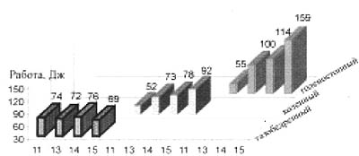 С увеличением скорости бега механическая работа в суставах не имеет однонаправленной тенденции к возрастанию. Так, работа в тазобедренном суставе почти не меняется - 74-69 Дж, в коленном - возрастает с 52 (V=11 м/с) до 92 Дж (V=15 м/с); а в голеностопном - увеличивается в 2,8 раза - с 55 (V=11 м/с) до 159 Дж (V=15 м/с).