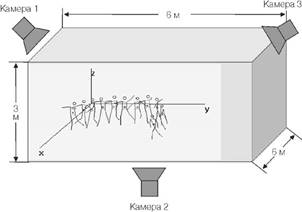 Организация исследования. Вальс Шопена был проанализирован с точки зрения физических параметров и качественной стороны [5]. С помощью трехмерной видеометрии, а также современных видеосредств получена информация с основных точек на теле спортсменов и проанализи рованы основные параметры владения пространством, временем, скоростью и амплитудой (рис. 1). Затем эти параметры были дополнены качественным анализом на основе личных впечатлений, который охватывал следующие критерии, оцениваемые пятью независимыми экспертами:
