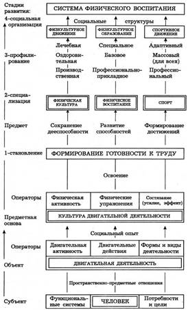 Физическое воспитание ориентировано на управление процессом индивидуального развития человека в пределах нормы этого развития путем целенаправленного повторения активных двигательных действий и воспроизводства сопряженных с ними отношений. Это отношения не только нейрофизиологической (включая физическую), но также сенсорно-интеллектуальной и эмоционально-нравственной активности. Кроме того, здесь речь идет не только о содействии нормальному развитию врожденных, приобретенных по наследству способностей и свойств, но и о формировании адаптивных, связанных со становлением функциональных систем активной деятельности. Поэтому физическое воспитание выходит за рамки собственно физической культуры и является особым направлением развития и освоения культуры двигательной деятельности.