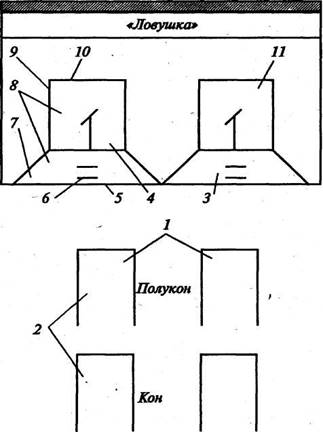 9— боковая линия; 10— задняя линия; 11— второй городок.