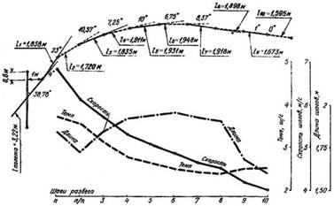 Дугообразный разбег - специфический для прыжка "фосбери-флоп" способ подготовки к отталкиванию (рис. 1 - вид сверху, усредненные характеристики). Каждый шаг разбега имеет свои двигательные установки. На первых двух- четырех шагах это повышение скорости передвижения ОЦМ тела спортсмена, достигаемое увеличением длины и темпа шагов (рис. 1). Дальнейшее повышение скорости разбега происходит благодаря увеличению темпа шагов в разбеге при некотором уменьшении их длины. При выполнении седьмого (пятого) шага спортсмен должен организовать наклон тела для перехода к бегу по повороту (см. рис. 1). Механизм этого движения нами уже описан. На шестом, пятом, четвертом, третьем шагах спортсмен под действием центростремительной силы изменяет направление движения на 6-10° в каждом шаге. При этом из-за наклона туловища внутрь дуги поворота (до 30-40о) понижение ОЦМ тела достигает 20 см и более. Это один из моментов, объясняющих целесообразность выполнения разбега по дуге.