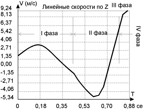 Рис. 2. Линейные скорости точек на головке ракетки в вертикальной плоскости (Vz)