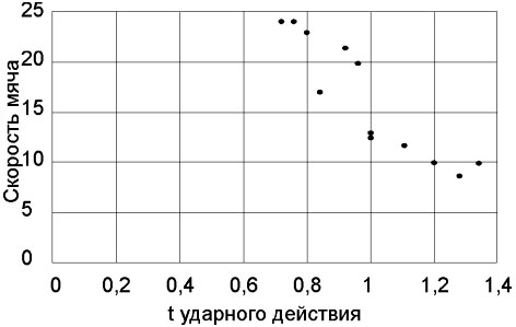 Рис. 4. Взаимосвязь между скоростью мяча до удара и продолжительностью ударного действия