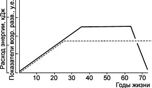 Современная наука пока не располагает достаточным объемом информации, позволяющим судить о динамике энерготрат в процессе онтогенеза, поскольку полученные материалы носят исключительно фрагментарный характер и дают основание судить о величинах расхода энергии лишь в микро- и мезоинтервалах времени и в основном у взрослых в процессе производственной деятельности.