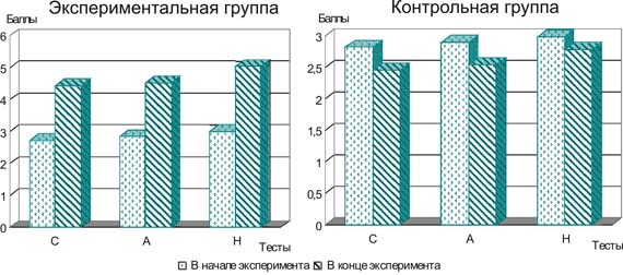 Рис. 7. Динамика результатов теста САН в экспериментальной и контрольной группах