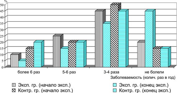 Рис. 8. Динамика простудных заболеваний студенток в начале и в конце эксперимента