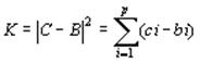 С учетом квадрата модуля разности векторов химических составов оптимизируемого рациона С и эталона В: