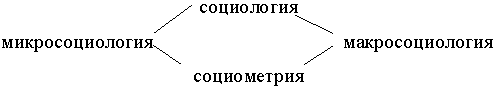 Морено рассматривает социометрию и социологию в одной системе, но вместе с тем отмечает и различие между ними: социология как наука занимается социальными феноменами вообще, в то время как социометрия проводит их измерения. Внутри социологии разграничиваются макросоциология - социология больших социальных групп, государств, наций - и микросоциология-социология малых групп, микрогрупп или “атомных групповых структур”.