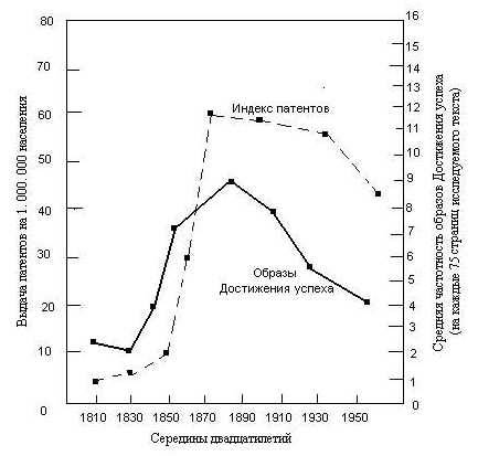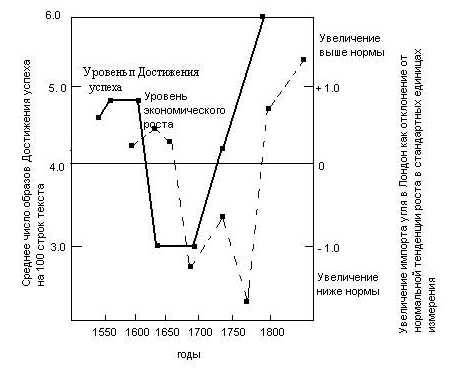 Что особенно интересно в этих находках, так это то, что изменения в коллективном интересе к достижению успеха предвосхищали подъем и упадок цивилизаций. Логично сделать вывод, что уровень интереса в достижении успеха был высок в период наивысшего подъема этих цивилизаций, иначе как объяснить их успешную деятельность – расширенную торговлю, постройку дворцов и городов, несколько веков спустя найденных археологами? Но такое доказательство просто называет мотив, объясняющий тот или иной вид деятельности. Реальное измерение уровней мотива достижения успеха показывает, что они были выше до периода наивысшего подъема, что объясняет бурную предпринимательскую активность, которая накапливала ресурсы для постройки дворцов и городов в период наивысшего подъема.