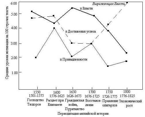 Другая проблема возникает при интерпретации оценок коллективных уровней мотивации, полученных из разных источников художественной литературы. Разница в уровнях п Власти, полученная из разных английских источников между 1600 и 1700, объясняется классовыми различиями между аристократией и простым людом, но не было предпринято систематических попыток увидеть, коррелировала ли разница уровней мотивации из этих двух источников с разницей в типах поведения этих двух классов. Можно даже задать вопрос: правильно ли предположить, что пьесы отражали интересы высшего класса больше, чем уличные баллады.