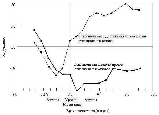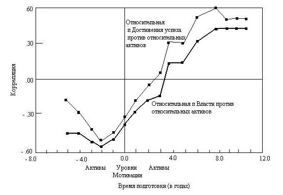 Одна из главных проблем возникает при определении времени подготовки между сдвигами мотивации и последующими историческими событиями. При взаимоотношении уровней п Достижения успеха и последующим экономическим ростом время подготовки варьировалось от нескольких веков при изучении Древней Греции до нескольких лет среди современных стран (см. Таблицу 11.4). Как одна и та же величина – уровень коллективной п Достижения успеха – может иметь один и тот же эффект через сто и через пять лет? Частично сложность состоит в определении времени в исследованиях отдаленных периодов, когда уровни п Достижения успеха были высоки. Данные помещаются между периодами по сто лет, но это реально не отражает, насколько высоким остался уровень в конце данного периода и в следующем. В современные периоды стало возможным получать более точные во времени показатели уровней мотивации; потому что отставание последующих социальных изменений уменьшается при более точной оценке существующего уровня мотивации.
