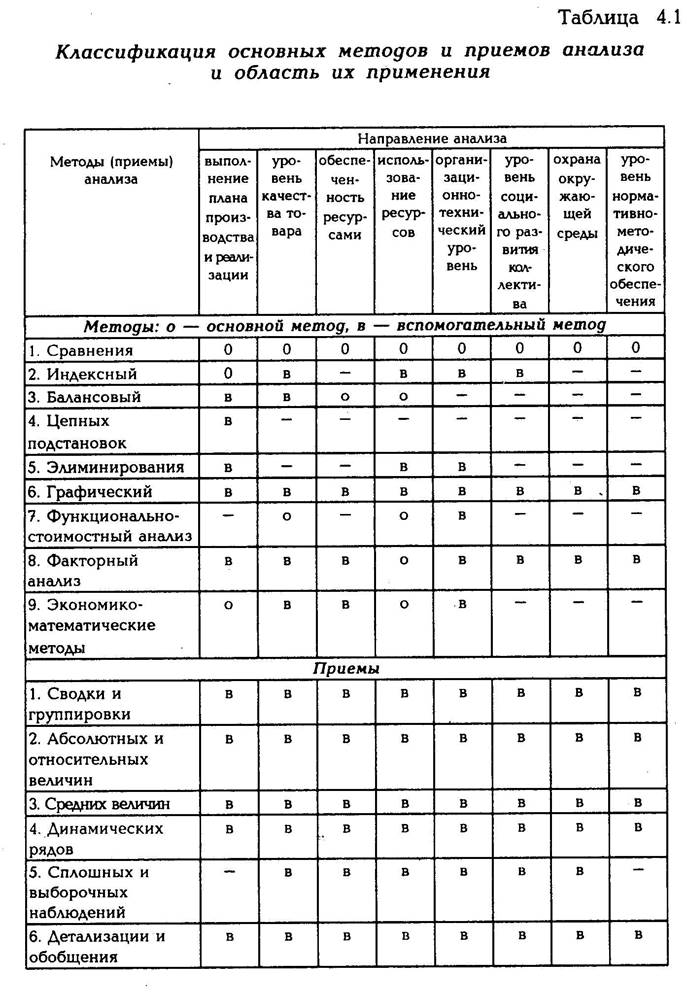 Классификация основных методов и приемов анализа и область их применения приведена в табл. 4.1.
