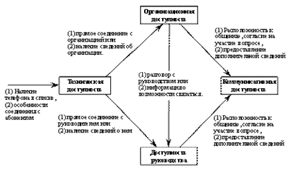 Если необходимость первых двух типов доступности представляется очевидной, то необходимость последнего может вызвать некоторые возражения. Существует достаточно причин, чтобы не встречаться с интервьюером и при этом не считать свою организацию закрытой для коммуникации. Поэтому респондентов спрашивали о принципиальной возможности их участия в опросе. Если респондент в период проведения исследования не мог поговорить с интервьюером о целях и делах организации, последний интересовался, возможно ли сделать это позже. Только при отрицательном ответе фиксировалась коммуникативная недоступность организации.
