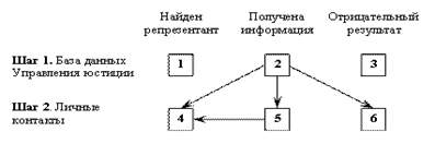 а1. Способ контакта (1 — поиск вывески, 2 — опрос человека, работающего или живущего по указанному адресу (вахтер, администратор, сотрудник фирмы и т. д.), 3 — телефонный звонок);