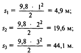 Во всех этих формулах s обозначает путь, t – время, g = 9,8 м/с2 – ускорение свободнопадающего тела.