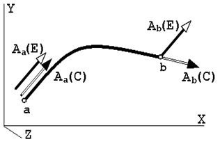 Мы предлагаем другую процедуру сравнения векторов в криволинейном пространстве. Мы выбираем в точке a два равных по величине и направлению вектора Aa (C) и Aa (E). Теперь мы перемещаем оба вектора в точку b . Вектор Aa (E) принадлежит евклидовому пространству. Он будет перемещаться параллельно самому себе: Aa (E) = Ab (E). Второй вектор будет перемещаться “параллельно самому себе” в пространстве C. Сравнивая вектора Ab (E) и Ab (С) в точке b , мы можем определить величину кривизны пространства C , как показано на рис. 5.