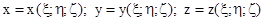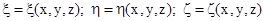 Обозначим криволинейное пространство символом C(ζ, η, ξ). Оно занимает бесконечный объем. Теперь мы введем евклидово пространство E(x, y, z) в этом же бесконечном пространстве. Таким образом, один и тот же бесконечный объем теперь описывается двумя способами: с помощью C и E. Эти пространства как бы “вложены” одно в другое. Мы предположим для упрощения, что между точками двух пространств имеет место взаимно однозначное соответствие.