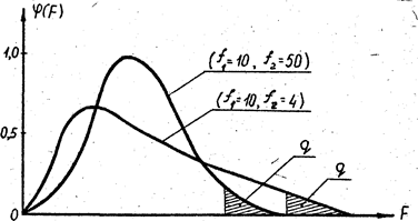 На рис. 1.3 показаны кривые распределения _____. Зачернена область критических значений F .