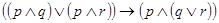 | p | q | r | p ^ q | p ^ r | АvB | q v r | p ^ D | С→ Е |