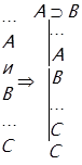 Сформулируем аналитические и синтетические правила поиска вывода для импликации. Задача вывода формулы AÉB из некоторой последовательности посылок сводится к подзадаче построения вывода формулы B из того же множества посылок и дополнительного допущения A. Это аналитическое правило введения импликации. Мы его запишем в виде