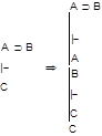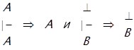 Если A стоит непосредственно над |-, то нижнее вхождение A и знак выводимости опускаются.