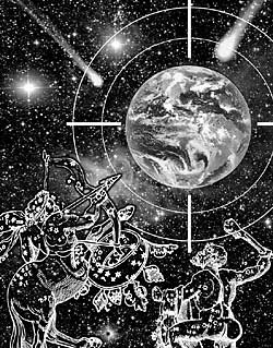 ПОДІБНИХ заяв, що лякають, останнім часом з'являється усе більше і більше. Вчені упевнені, що зіткнення з космічними об'єктами вже як мінімум двічі практично цілком знищувало життя на нашій планеті, - настільки сенсаційні висновки викладені в останньому звіті вчених НАСА. Саме тому, вважають вони, 65 мільйонів років тому вимерли динозаври. А ще раніш, 250 мільйонів років тому, падіння астероїда знищило населявших нашу Землю тараканоподібних істот, називаних трилобітами, тоді ж було знищено близько 70% усієї рослинності. Наскільки ми можемо бути упевнені, що трагедія не повториться?