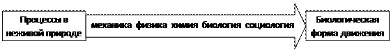 Общим и единым для всех областей природы понятием "форма движения материи" (рис. 5) Энгельс охватил: во-первых, различные процессы в неживой природе; во-вторых, жизнь (биологическую форму движения). Отсюда следовало, что науки располагаются естественным образом в единый ряд – механика, физика, химия, биология, социологическая форма движения материи – подобно тому, как следуют друг за другом, переходят друг в друга и развиваются одна из другой сами формы движения материи, – высшие из низших, сложные из простых. "Классификация наук, каждая из которых анализирует отдельную форму движения или ряд связанных между собой и переходящих друг в друга форм движения материи, является вместе с тем классификацией, расположением, согласно внутренне присущей им последовательности самих этих форм движения, и в этом именно и заключается ее значение".