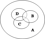 Орудие (А), Орудие взлома (В), Орудие преступления (С), Топор (D). И покажем их отношения: А по отношению к В, С, D является родовым, и поэтому включает их в себя в качестве видовых, а В, С, D между собой находятся в отношении пересечения, так как топор может быть орудием взлома, а может и не быть, так же как и орудием преступления. В свою очередь, орудие взлома может быть топором, а может и не быть, а орудие преступления быть орудием взлома или топором или и тем и другим или ни тем, ни другим. Это следует показать на схеме: