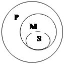 Разновидность силлогизма, в которой средний термин занимает место субъекта в большей посылке (М—Р) и место предиката в меньшей (S—M) называется первой фигурой.