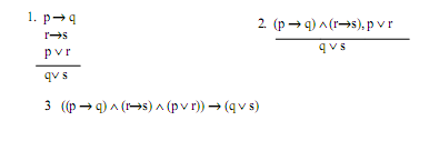 Структуру данной сложной конструктивной дилеммы может быть выражена следующими равносильными схемами: