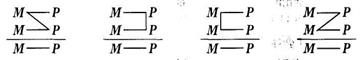 Якщо розглядати структуру силогізму в залежності від розташування трьох термінів, то можливі чотирисхеми: