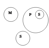 Субъект заключения «мошенничество» является в силлогизме меньшим термином, а предикат «является наказуемым»-большим. Термин, входящий в посылки, но отсутствующий в заключении (преступление) является средним термином.