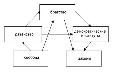 Государство, власть, и прочие социальные институты (как организации!) люди придумали себе для спокойствия и выживания. Братство (отношения между людьми) подчинено Равенству всех перед общими институтами жизни.