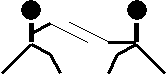«“ ” : если в этом образе фигура с правой стороны представляет человека А, фигура с левой стороны обозначает человека В, тогда целое может приблизительно высказывать: “А фехтует с В”. В образном написании предложение может быть истинным или ложным. Оно имеет смысл независимо от своей истинности или ложности. В нем должно обнаружить себя все самое существенное»[68]